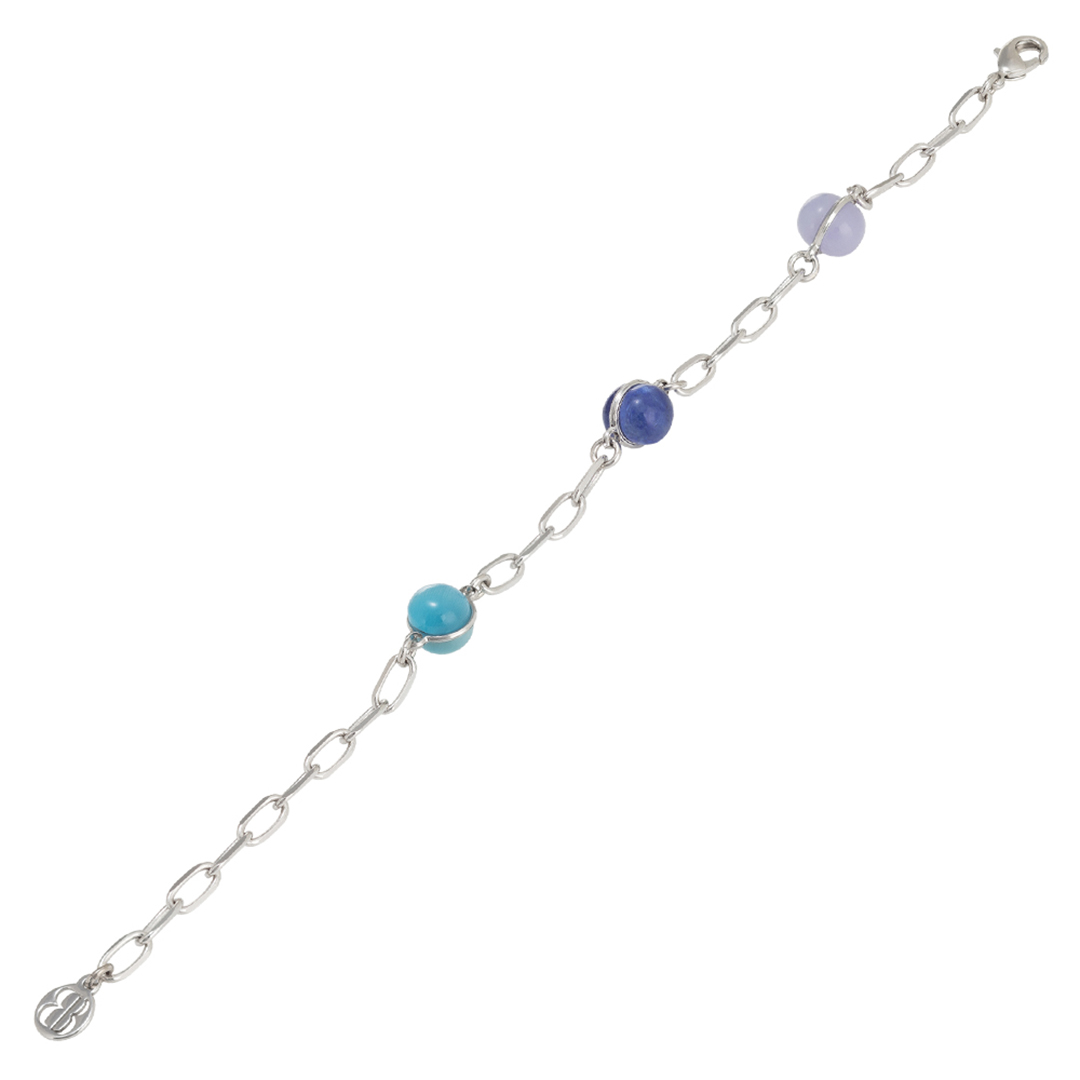 Bracciale Da Donna Della Collezione Emblema Della Linea Mediteranea. Bracciale A Catena Con Cabochon Blu, Celeste E Lilla Boccadamo Della Collezione Emblema. Linea Mediterranea. Struttura: A Catena Rodiato Con Maglie Rettangolari E Cabochon Blu Rutilato, Celeste Gatteggiante E Azzurro-Lilla. Materiale: Bronzo Produzione: Realizzato In Italia Misure: Lunghezza Regolabile Max Cm 19,5 Dimensione: Diametro Cabochon Mm 8 Chiusura: Con Moschettone. La Referenza È Xbr856